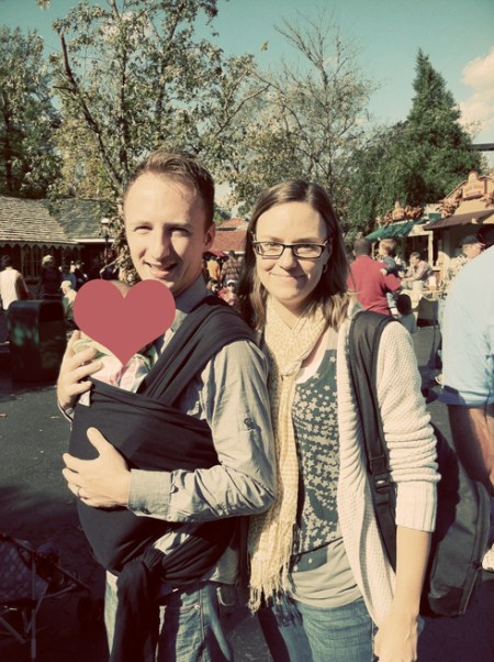 Speaking of Moby wrap, Jason was talked into trying it on while we were walking around going on rides. We got a pretty cute family picture of the three of us… I wish I could show you the whole picture. Maybe someday.