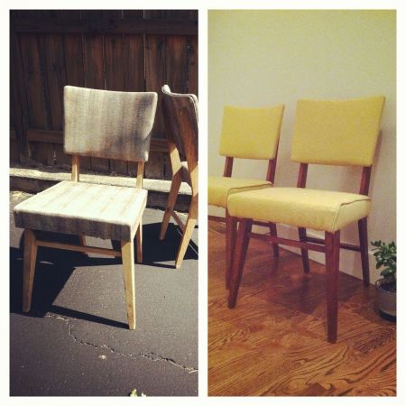 • Upholstery work is painful! I have more mystery bruises on my legs than I care to count. I have a gouge in one of my legs, two scraped knuckles and tender finger tips from accidental pin stabs. Jason, my professional guitarist, über careful (I call him “Safety Dad”) husband stapled into one of his fingertips. It was bloody and gross but thankfully a picking finger and it healed pretty quickly. My back and arms got quite a workout, too. I think my arms are the strongest they’ve ever been right now. It’s good exercise. See, I can be optimistic, too!