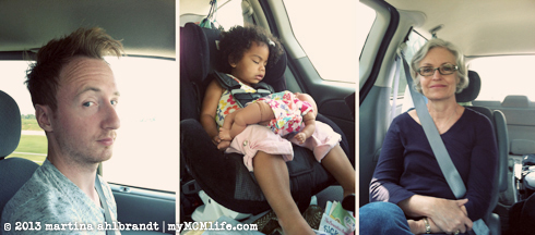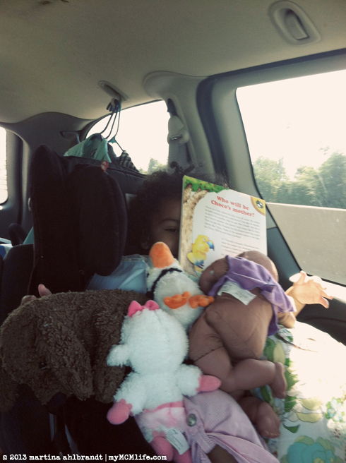 The 9 hour drive was 11 hrs one way and 12 hrs the other way with a potty training toddler sick with a cold, road construction and traffic jams. But, all-in-all, she’s a great traveler. We got bored a few times.