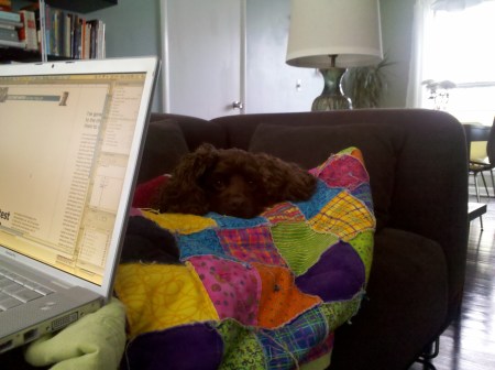 Lucy loves it when I’m working from home so she can sit on my lap and keep my legs warm.